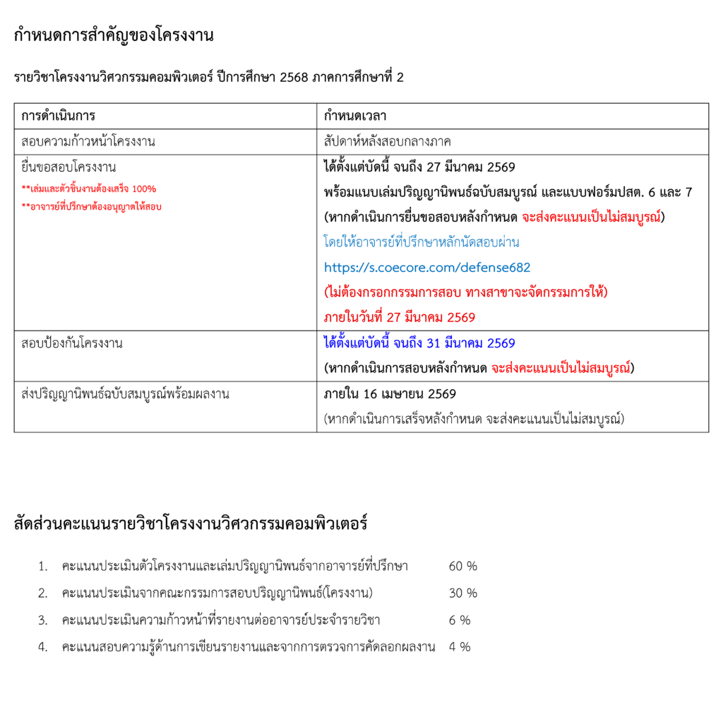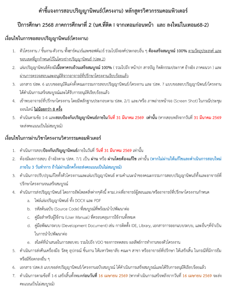 คำชี้แจงการสอบโครงงาน 2/2568